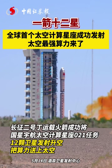北京时间2025年5月14日12时12分,国星宇航在酒泉卫星发射中心使用长征二号丁运载火箭,成功将太空计算星座021任务12颗卫星发射升空,卫星顺利进入预定轨道,标志着全球首个太空计算星座成功发射!